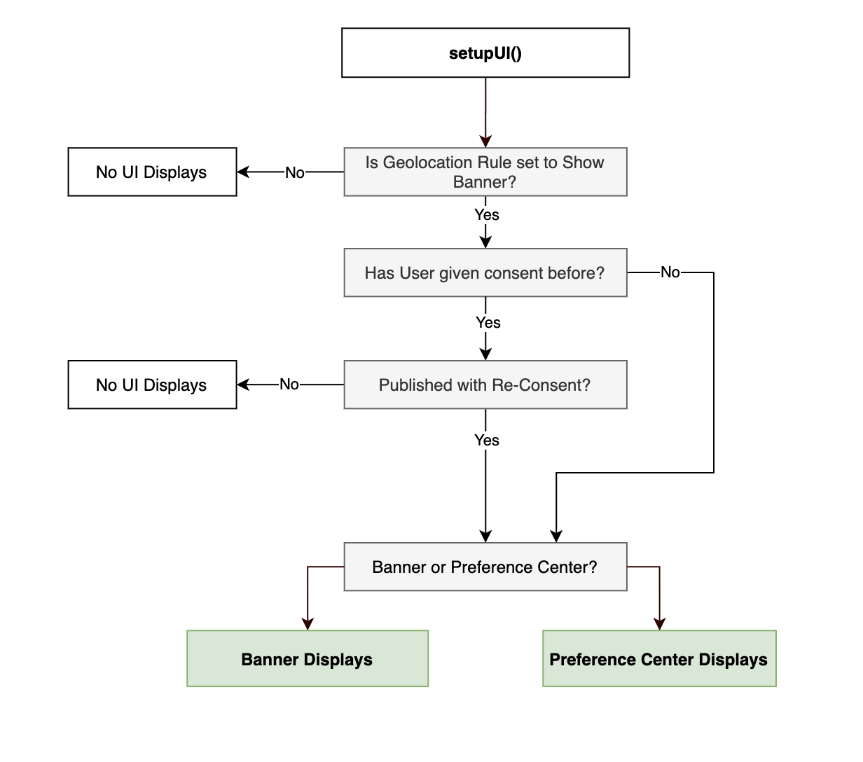 When combined with a "type", setupUI() automatically evaluates the shouldShowBanner logic to determine whether the specified UI should be shown to users.
