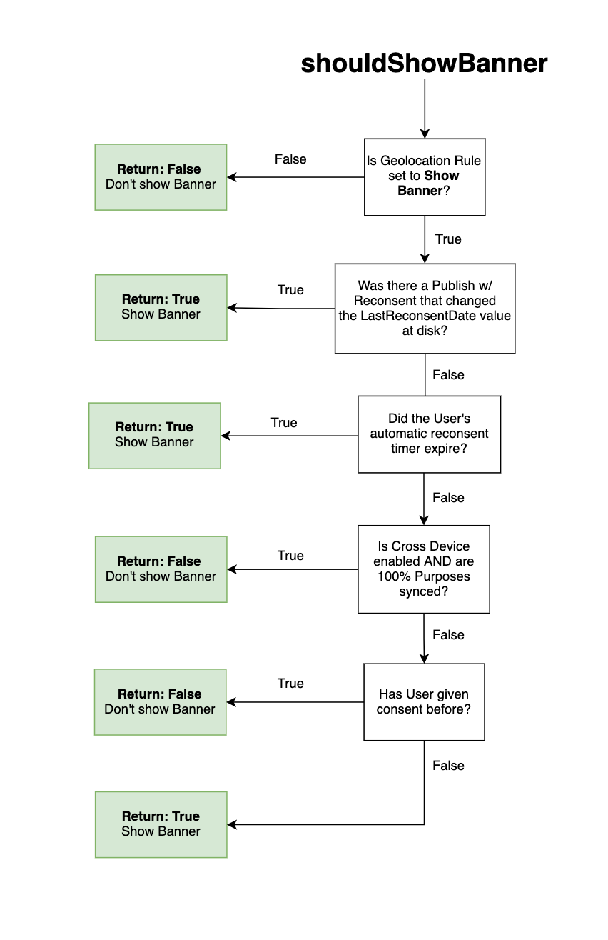 • If no, the method returns true and a banner should be shown because this is the first time they are being asked to give consent on the app.